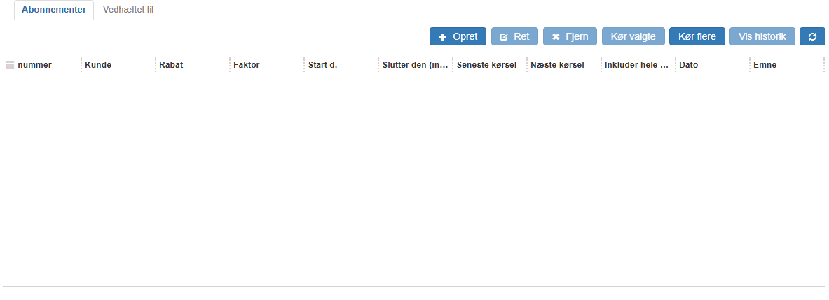 Kunde: Kan kun vælges ved oprettelse af en ny kundekontrakt. Her vælges den kunde, som abonnementet skal tildeles.