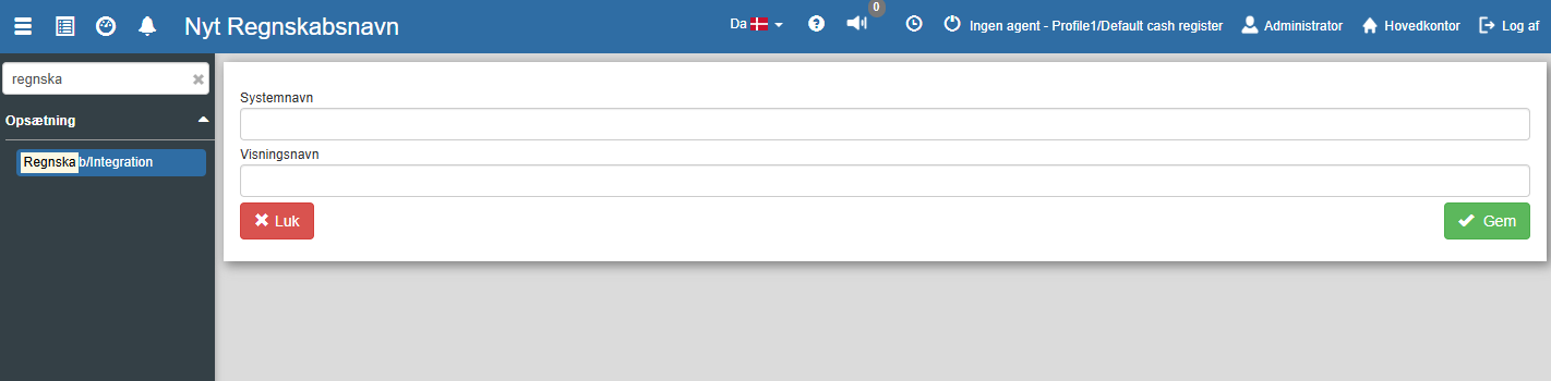 2. Naviger til "Regnskab/Integration".