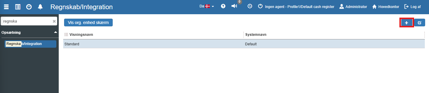 Ønsker du at oprette et nyt regnskabsnavn, kan dette nemt gøres med et klik på det blå "+" ikon øverst til højre: