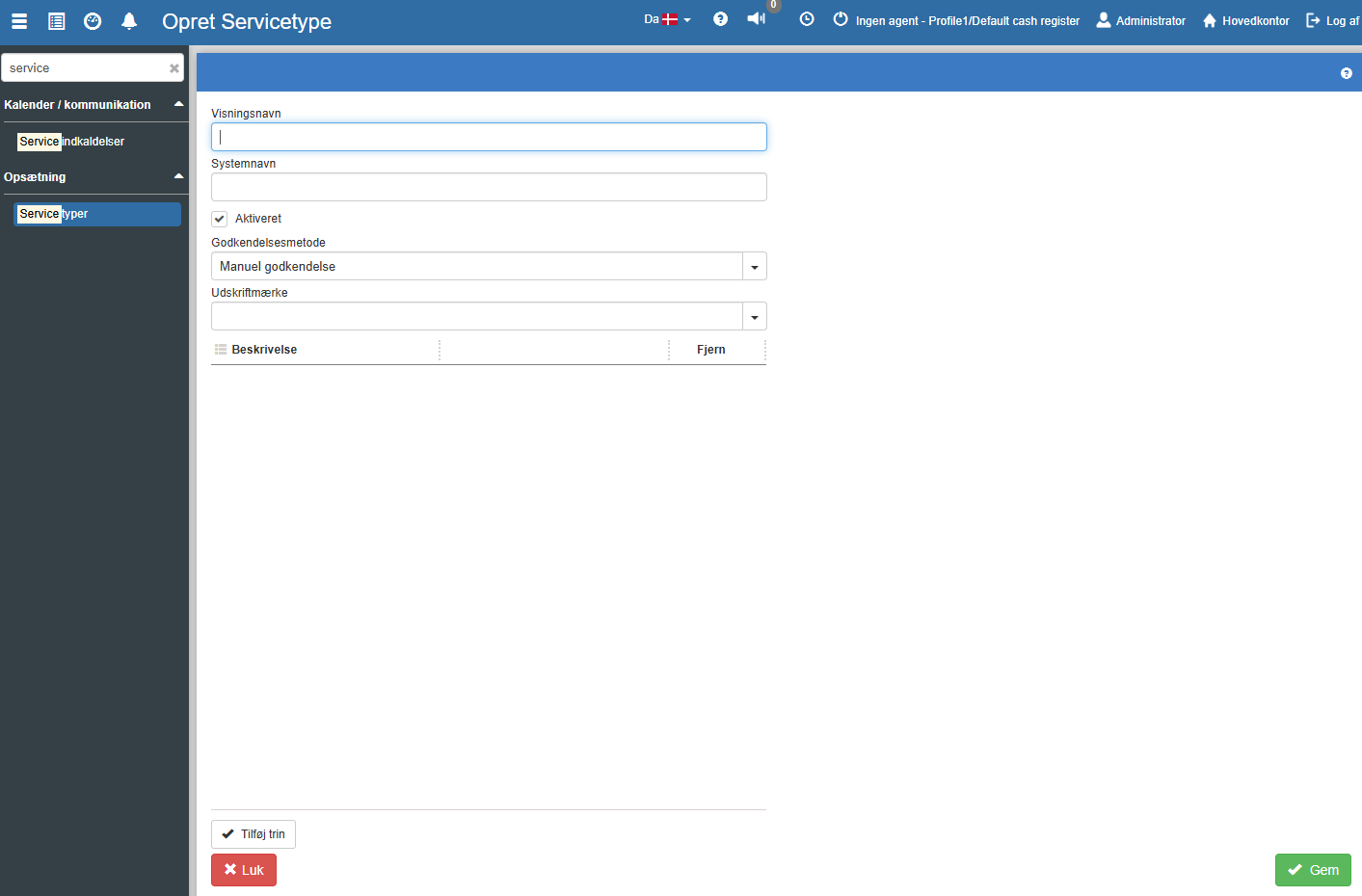 For eksempel kan du oprette servicetyper som "Teknisk support", "Vedligeholdelse" eller "Projektopfølgning". Hver servicetype kan defineres med specifikke regler og krav, der passer til den pågældende opgave. På denne måde sikrer du, at hver serviceanmodning behandles i overensstemmelse med virksomhedens standarder og arbejdsgange.