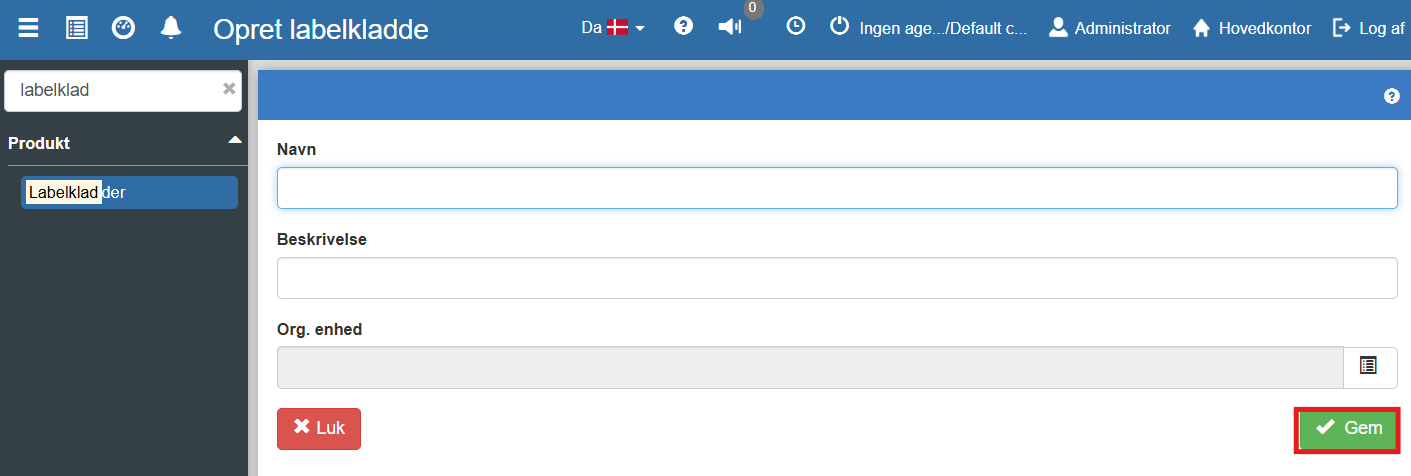 Når du arbejder med labelkladder, kan du nemt oprette nye ved at vælge "Opret labelkladde" og udfylde felterne, såsom navn, beskrivelse og den organisatoriske enhed, der skal tilknyttes. Dette giver dig fleksibilitet til at skræddersy og tilpasse etiketter efter behov, hvilket gør det lettere at holde styr på dine produkter og kategorisere dem effektivt. Når en labelkladde er oprettet, kan den redigeres, udskrives eller slettes efter behov.