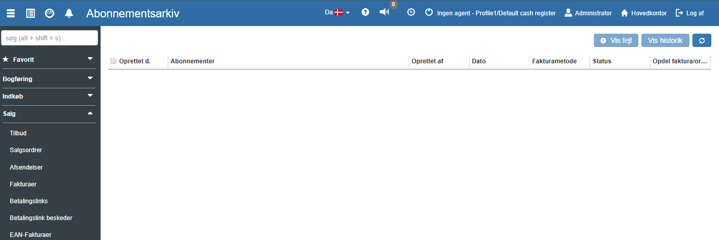 Modulet giver dig mulighed for at se, hvad der er blevet oprettet og sendt i forbindelse med en abonnementskørsel. Arkivet er en vigtig del af opsporing, fejlfinding og historik, da du her kan se både status og eventuelle fejl på kørsler.