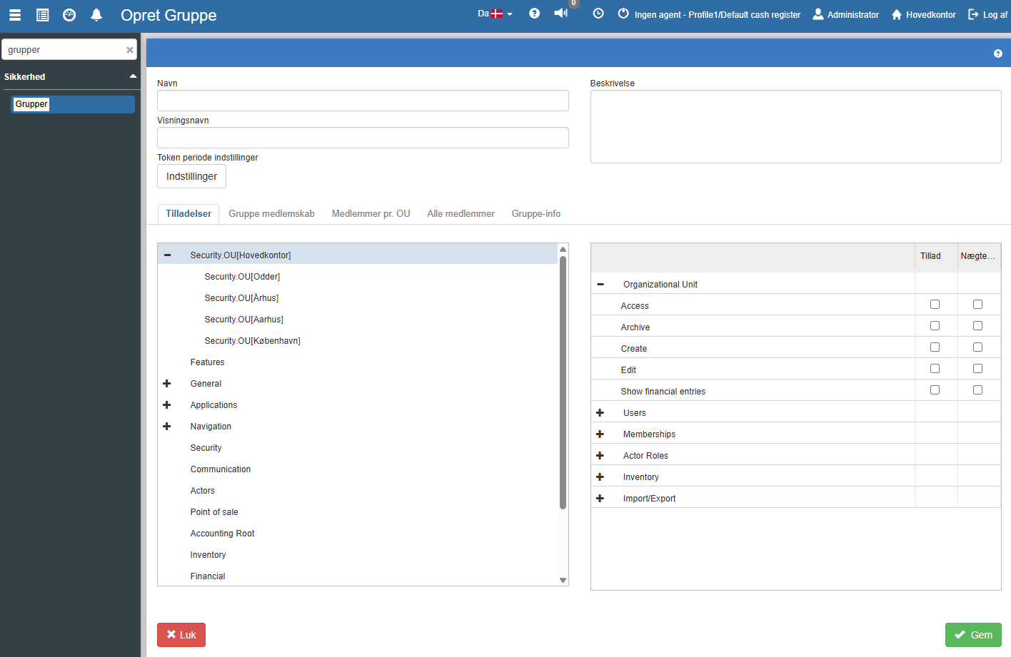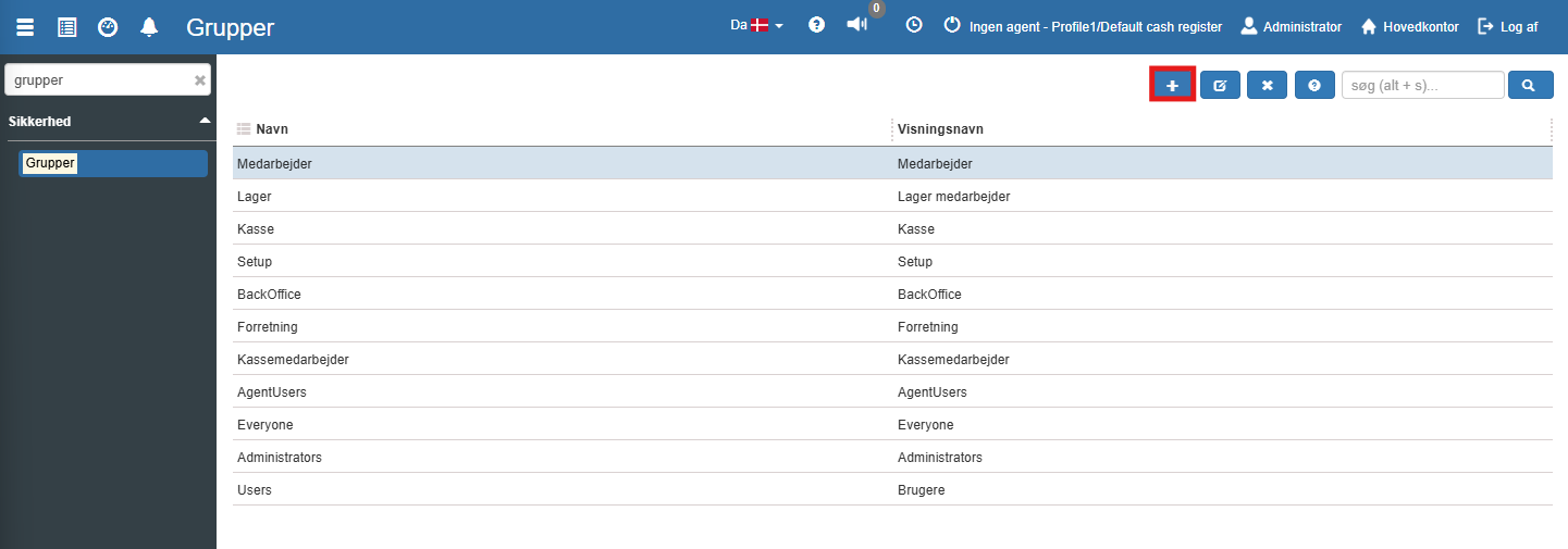 2. Fra "Shop Manager" tilgås "Sikkerhed" -> "Grupper".
