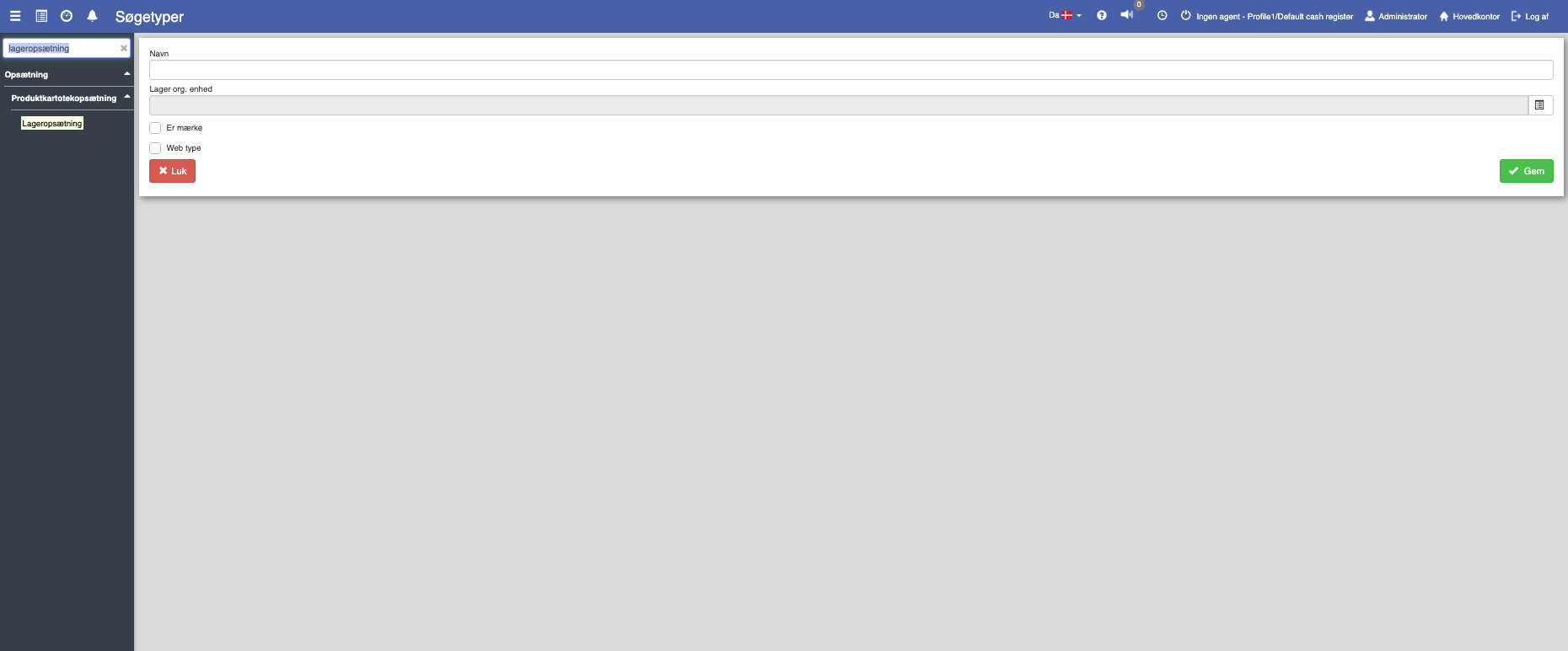 Vælg det lager, der skal være gældende for den pågældende organisatoriske enhed.