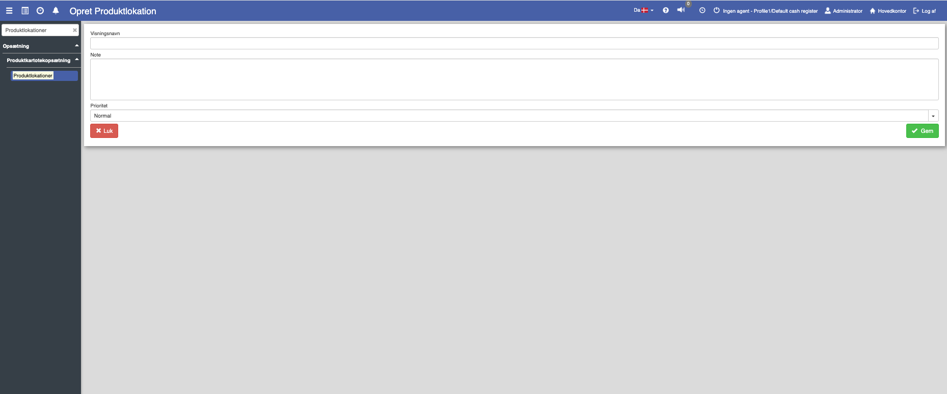 Følgende menu vil nu åbne sig, hvor du har mulighed for at oprette en ny produktlokation:
