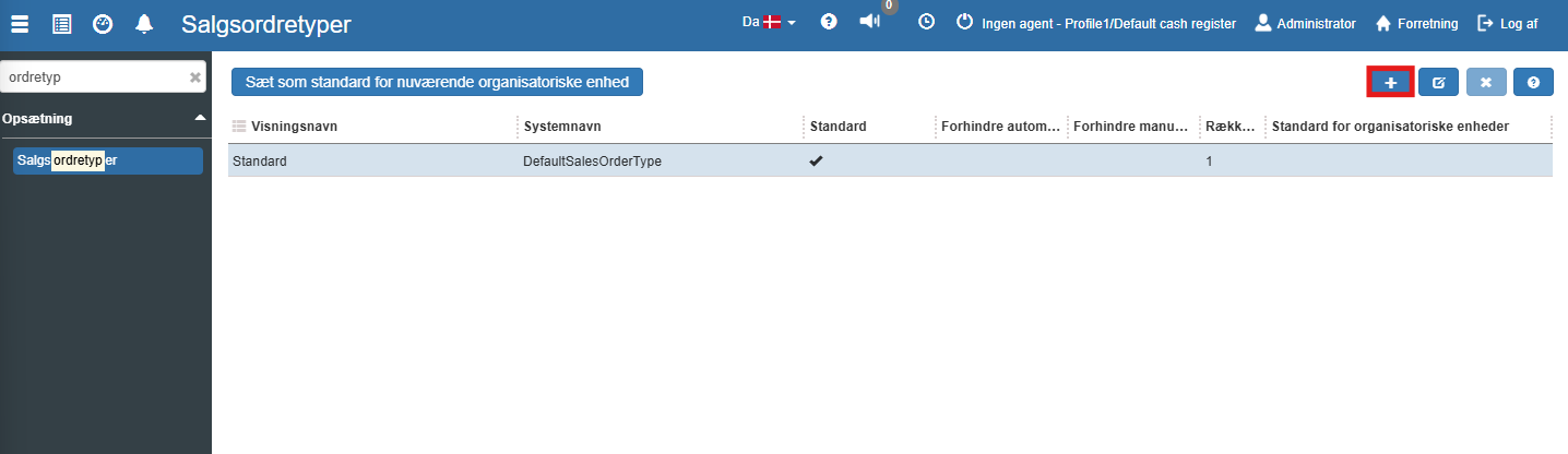 Ønsker du at oprette en ny ordretype, kan dette nemt gøres med et klik på det blå "+" ikon øverst til højre: