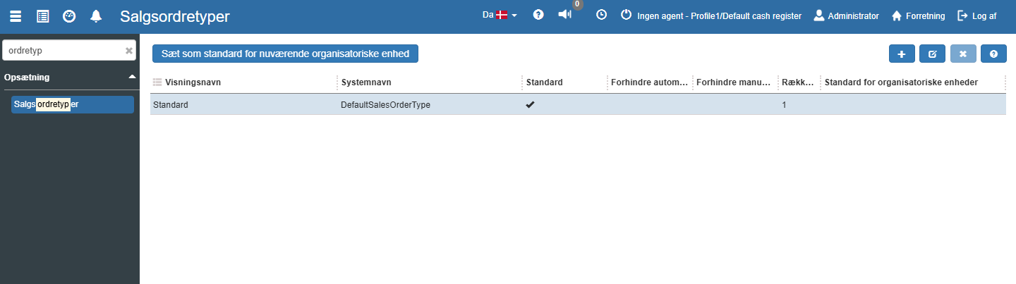 Marker feltet "Standard", hvis denne type skal være standard for nye salgsordrer.