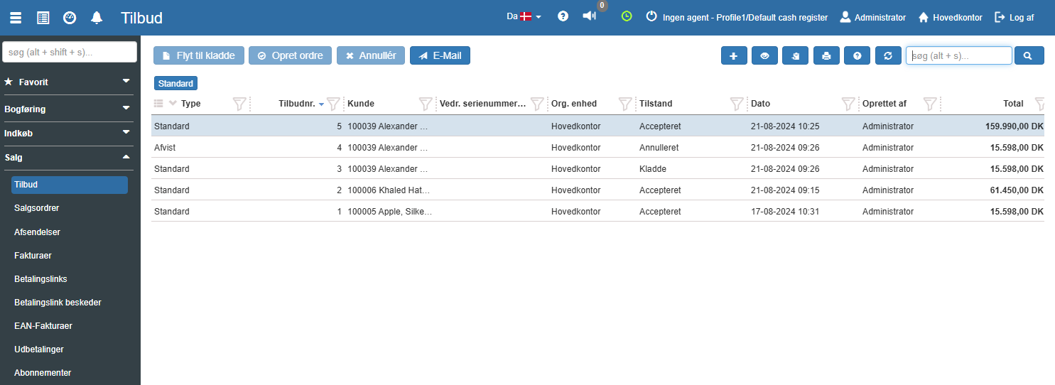 3. Vælg udskriften "Tilbud"