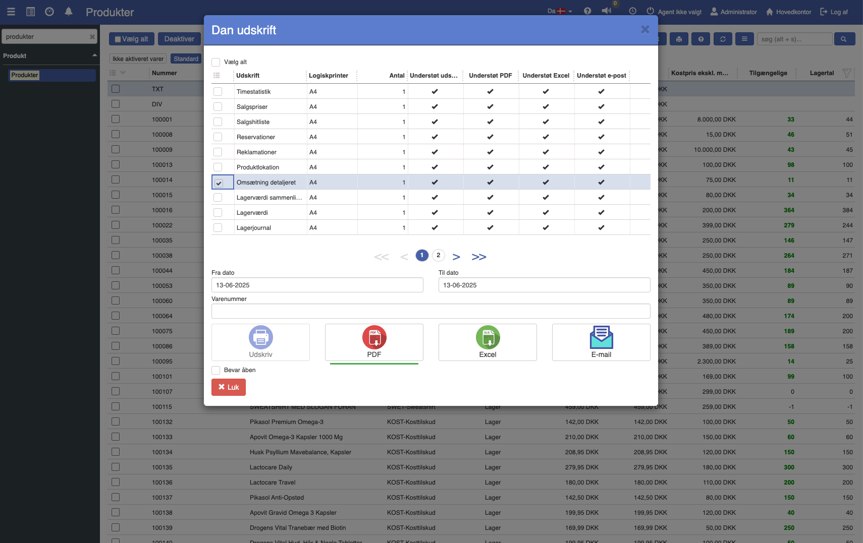 Fra / til dato: Her angives datointervallet som omsætningsudskriften skal følge.