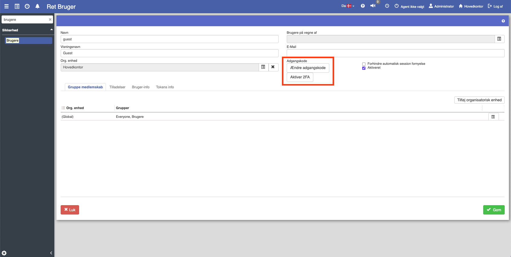 1. Fra "Shop Manager" tilgås "Sikkerhed" og derefter "Brugere".