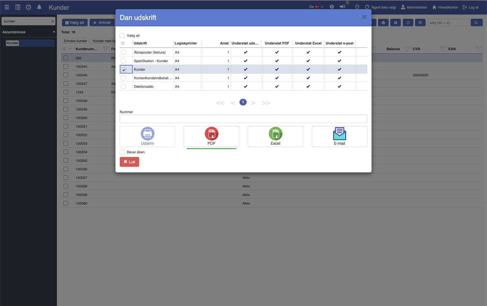 Kundenummer: Hvis ønsket, kan udtrækket begrænses til at omfatte en bestemt debitor / kunde.