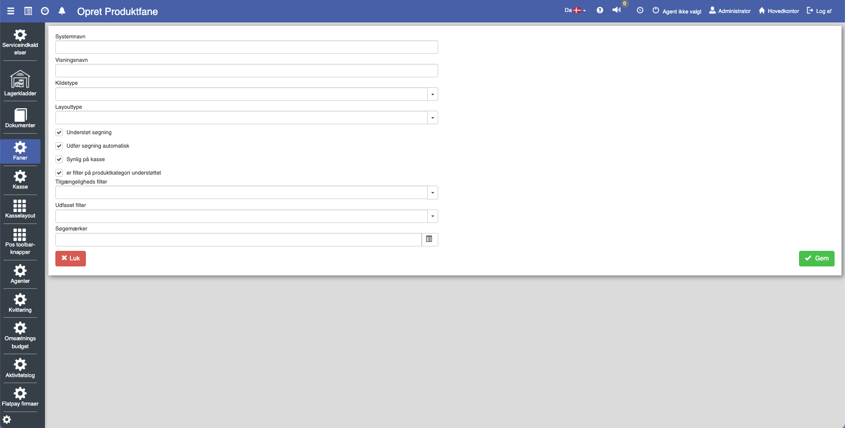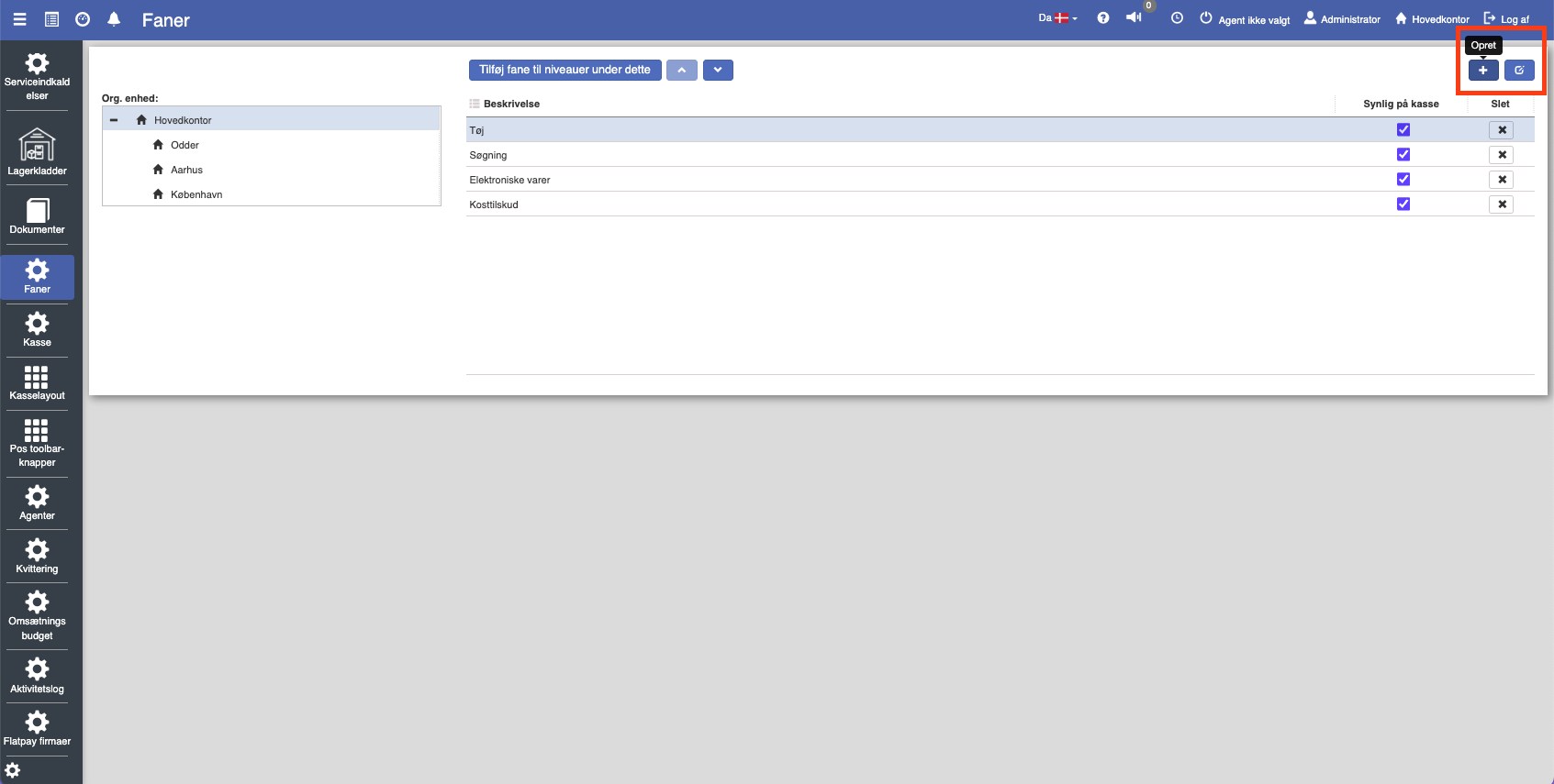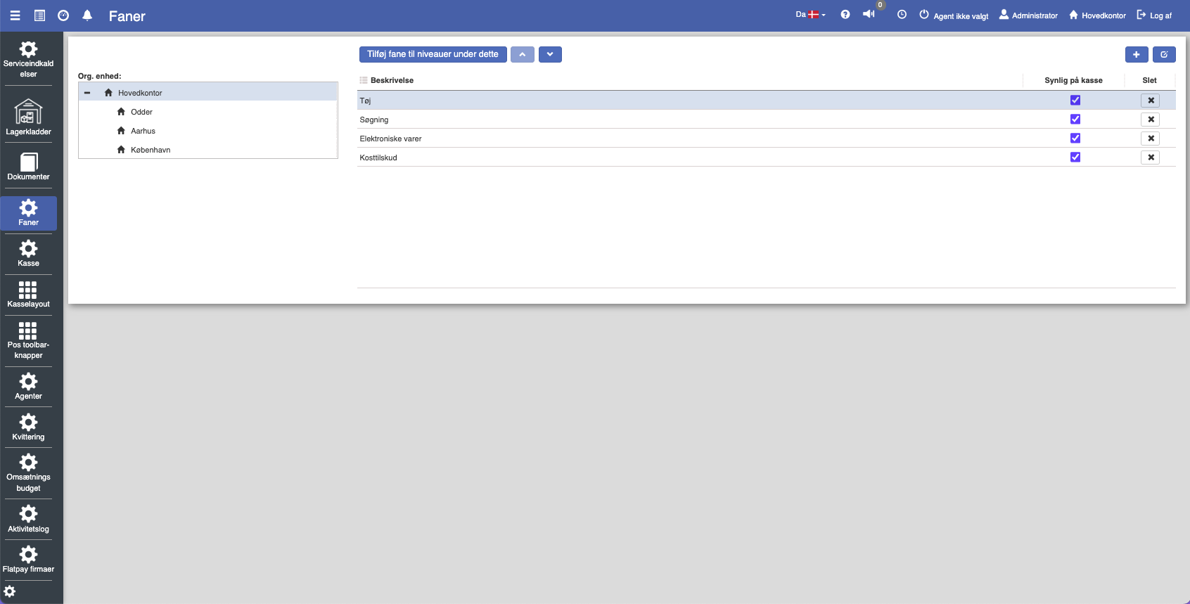 Faner hjælper dig med at navigere gennem dine produkter og vises på kasse siden. Faner viser dine forskellige produktkategorier.
