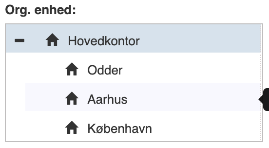 Har man mere end én afdeling (organisatorisk enhed), kan de også konfigureres individuelt ved at markere den respektive afdeling oppe i venstre hjørne.