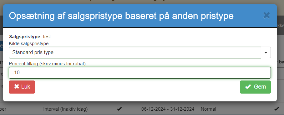 Her skal du vælge “Standart pristype” og skrive den rabat der ønskes.