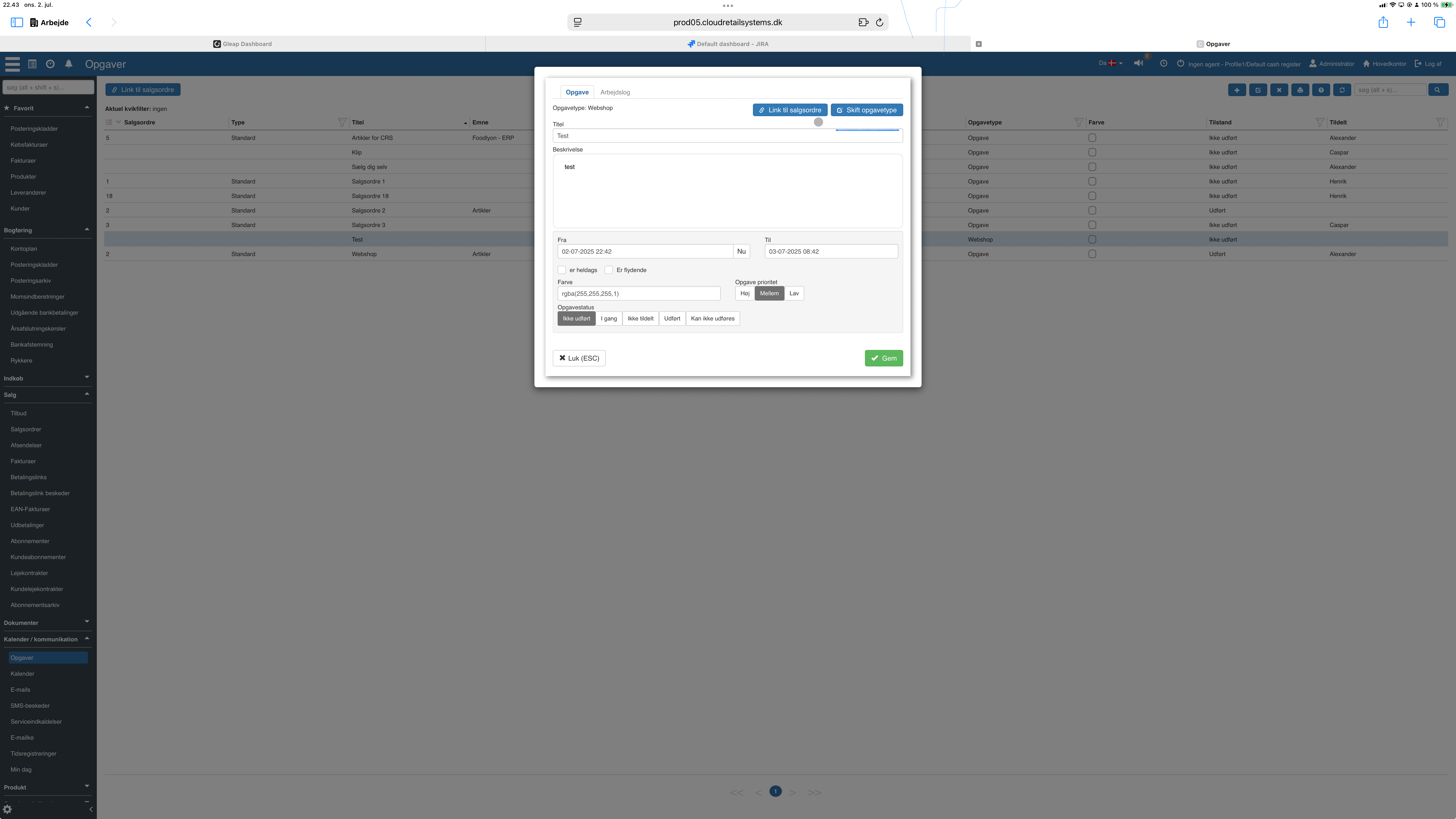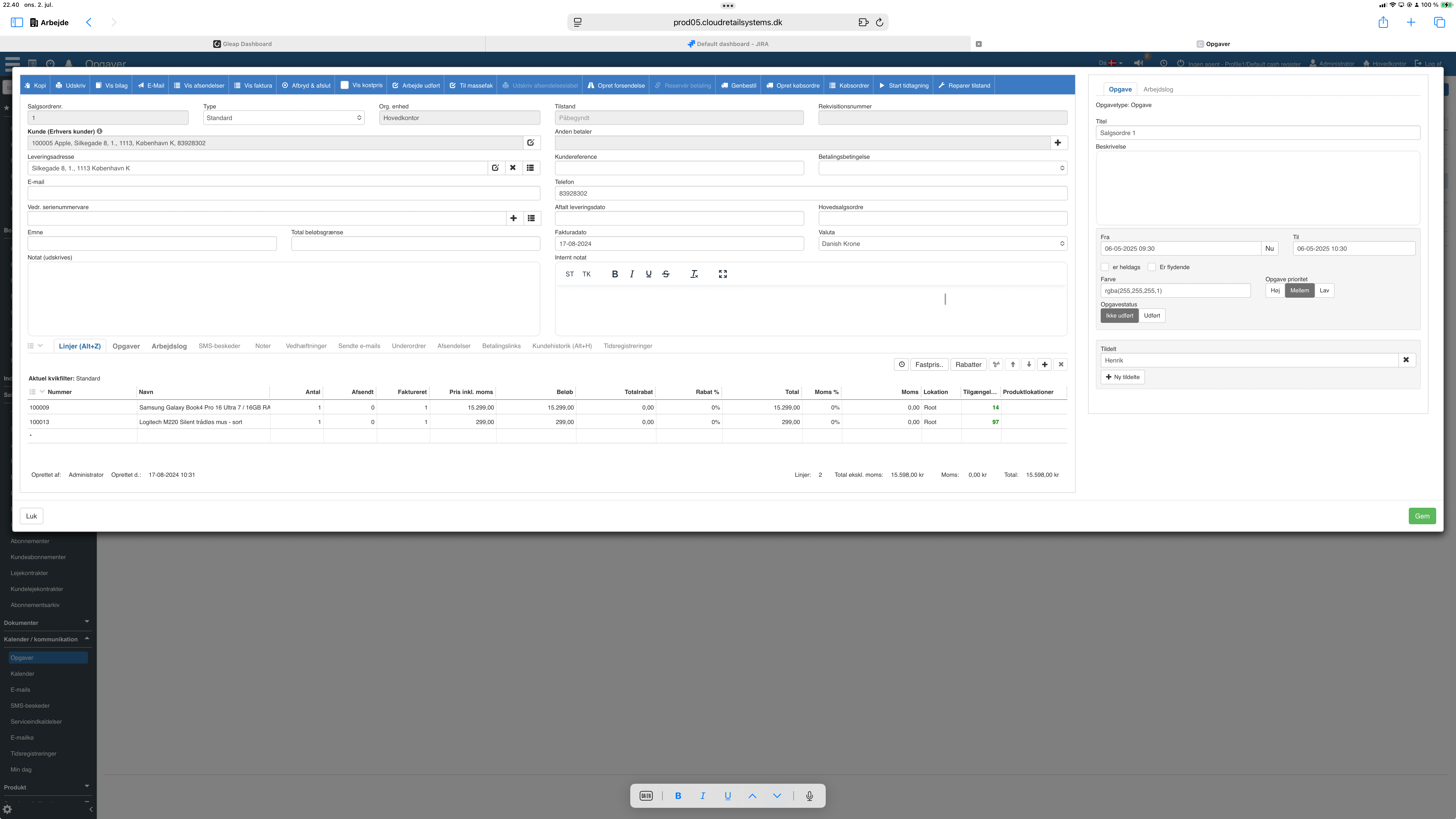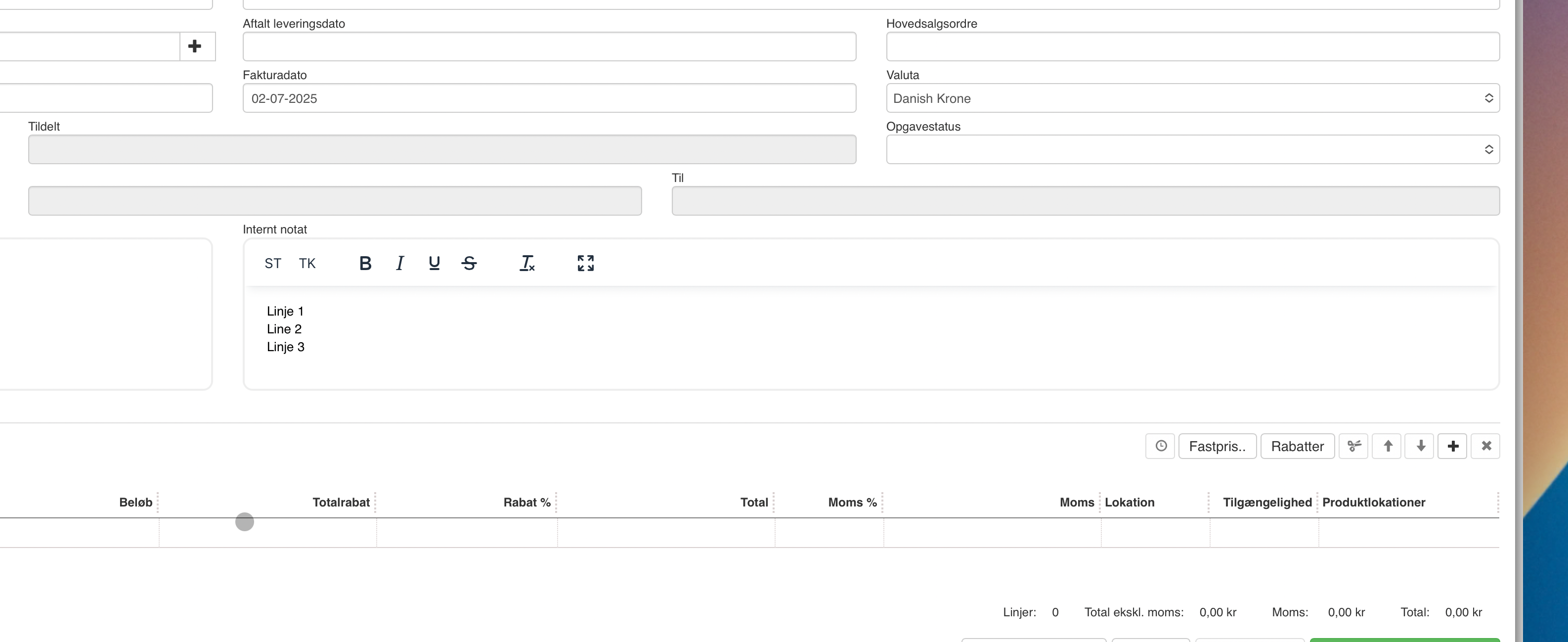 Nu vises opgaven til højre for salgsordren - og opgaven er mere overskuelig.