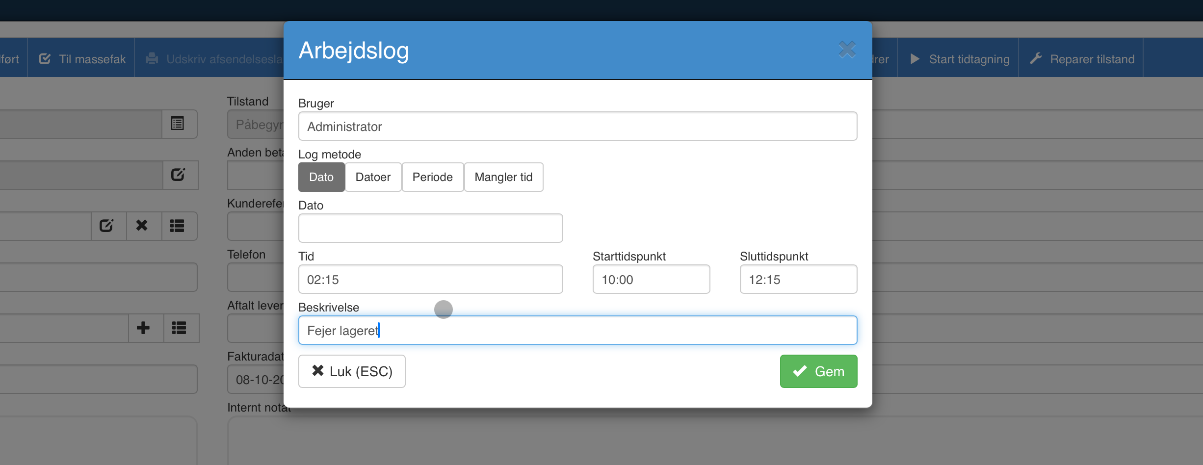 Det er nu muligt at indtaste start- og sluttidspunkt - hvorefter tidsforbrug automatisk beregnes.