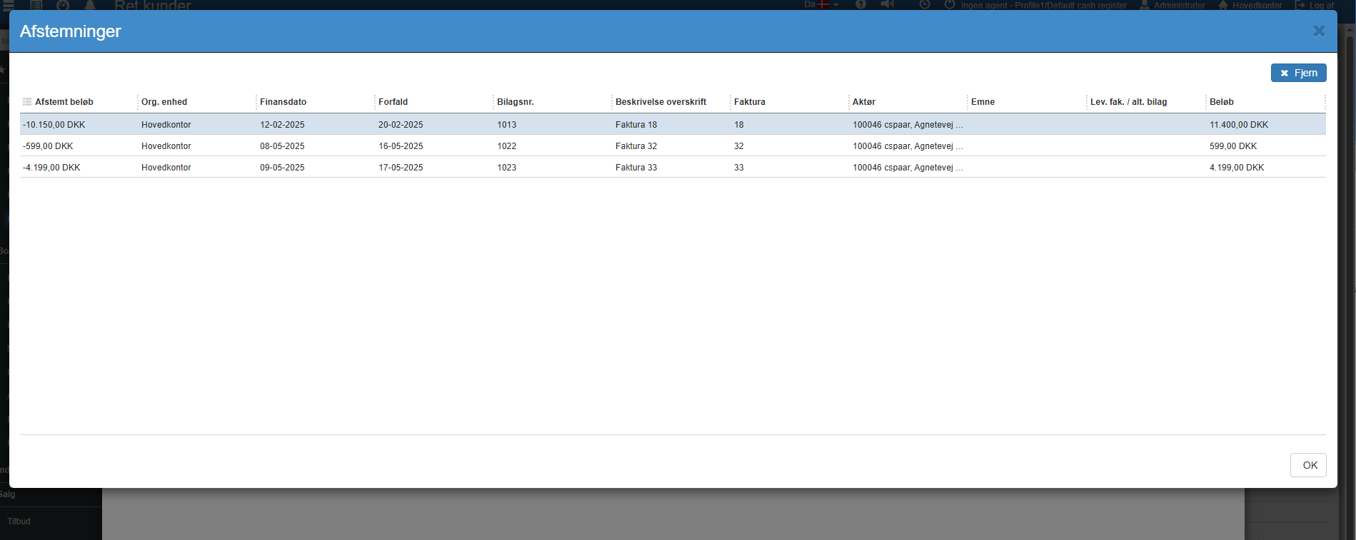 Vælg den udlignede række og tryk “Vis afstemninger”.