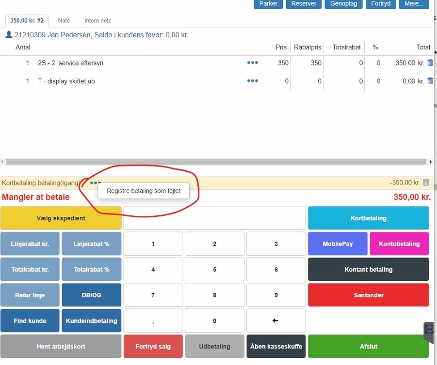 Ved kundesøgning med entydigt match kan kunden vælges ved tryk på “Enter” tasten.