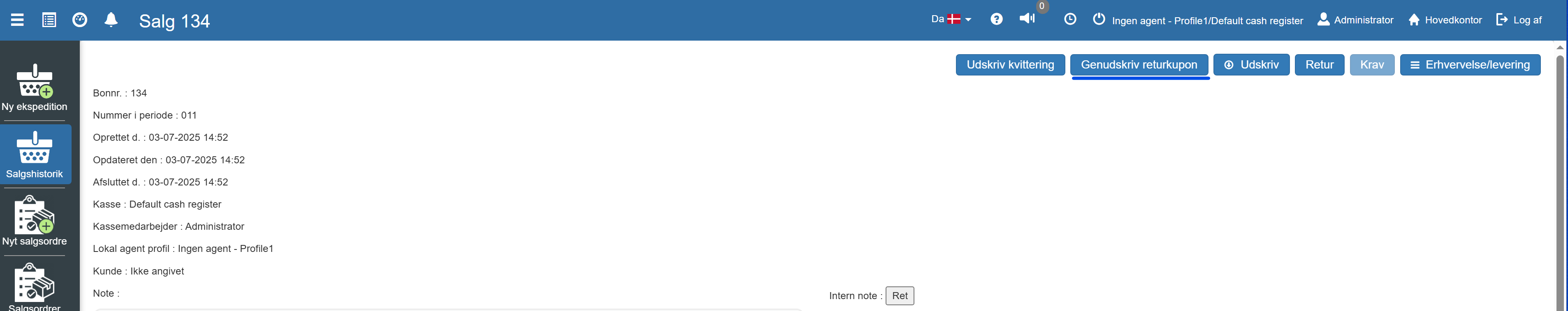 Genudskriv af tilgodeseddel kan nu foretages fra Salgshistorik.