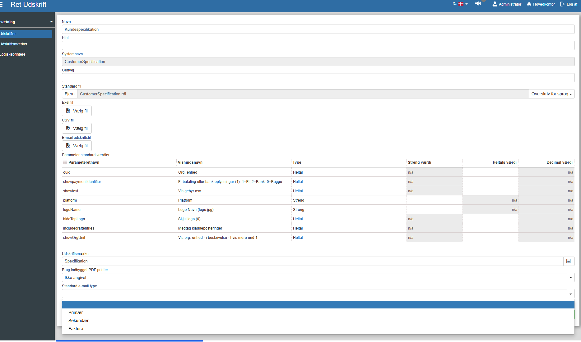 På salgs- og kunde relaterede udskrifter kan man sætte man på udskriften vælge hvilken e-mail type der skal foretrækkes.