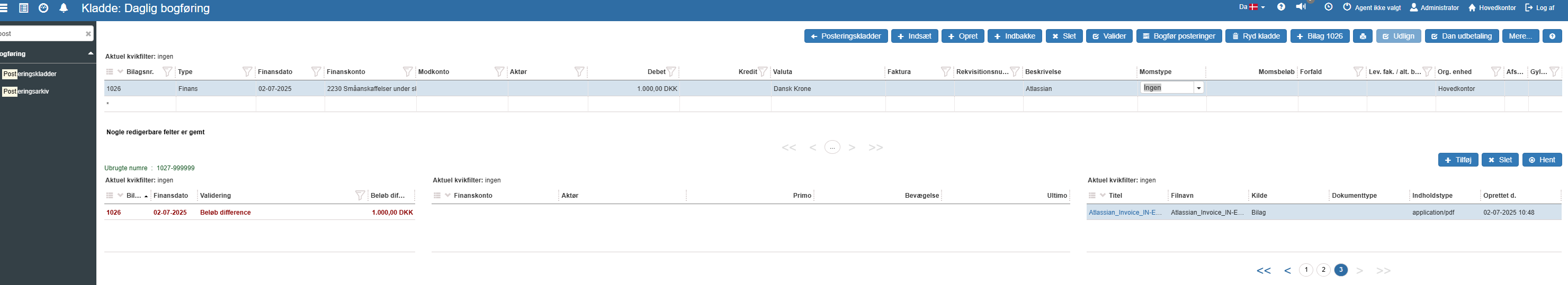 Herefter oprettes posteringen og bilaget i posteringskladden.