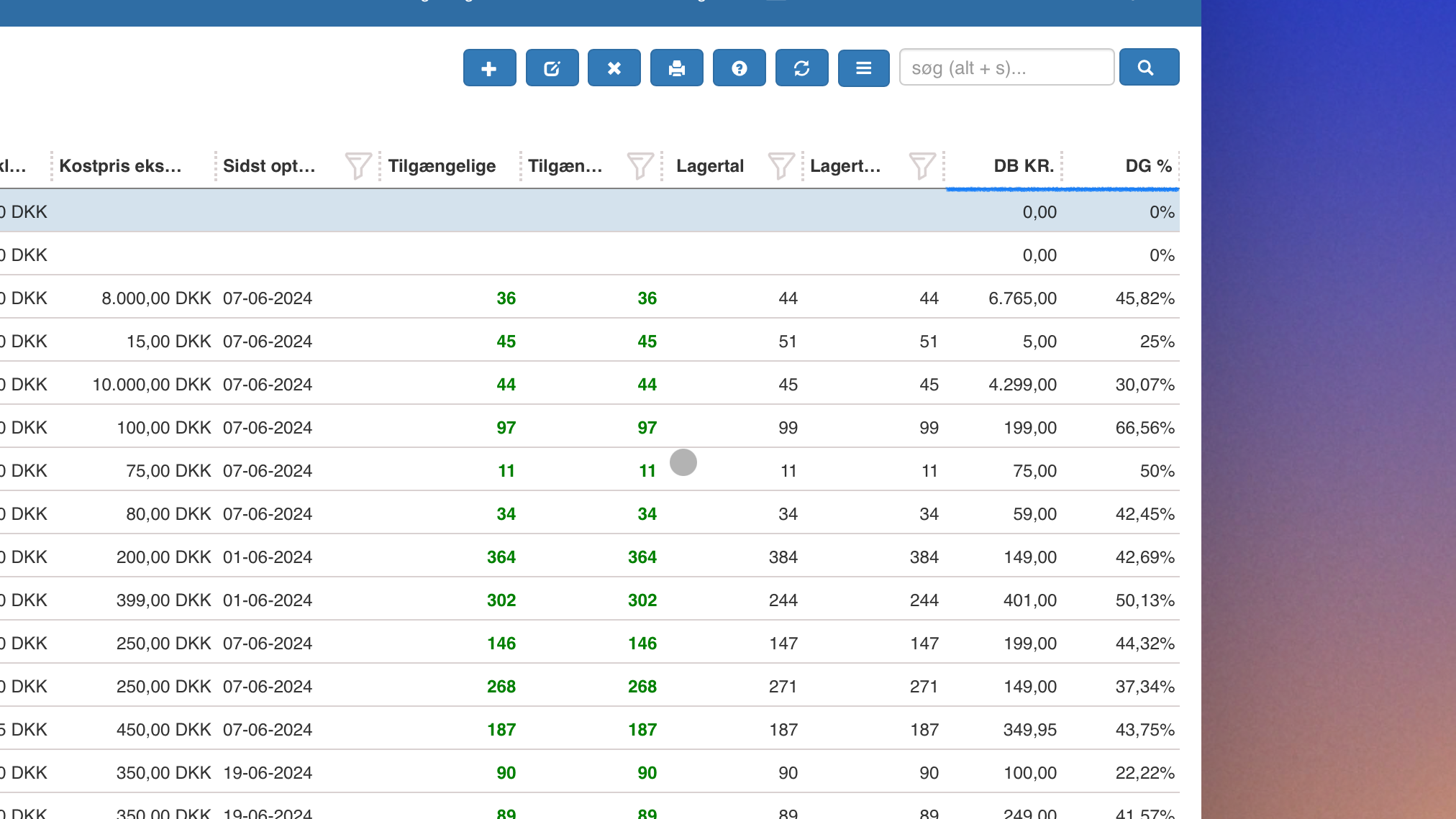 Flere skærmbilleder er justeret - så de matcher andre skærmbilleder bedre. Eks. ‘Ret kunder’ og ‘Ret leverandører’ har nu samme slags toolbar, som ‘Ret produkter’ og samme slags knapper i bunden af skærmen.