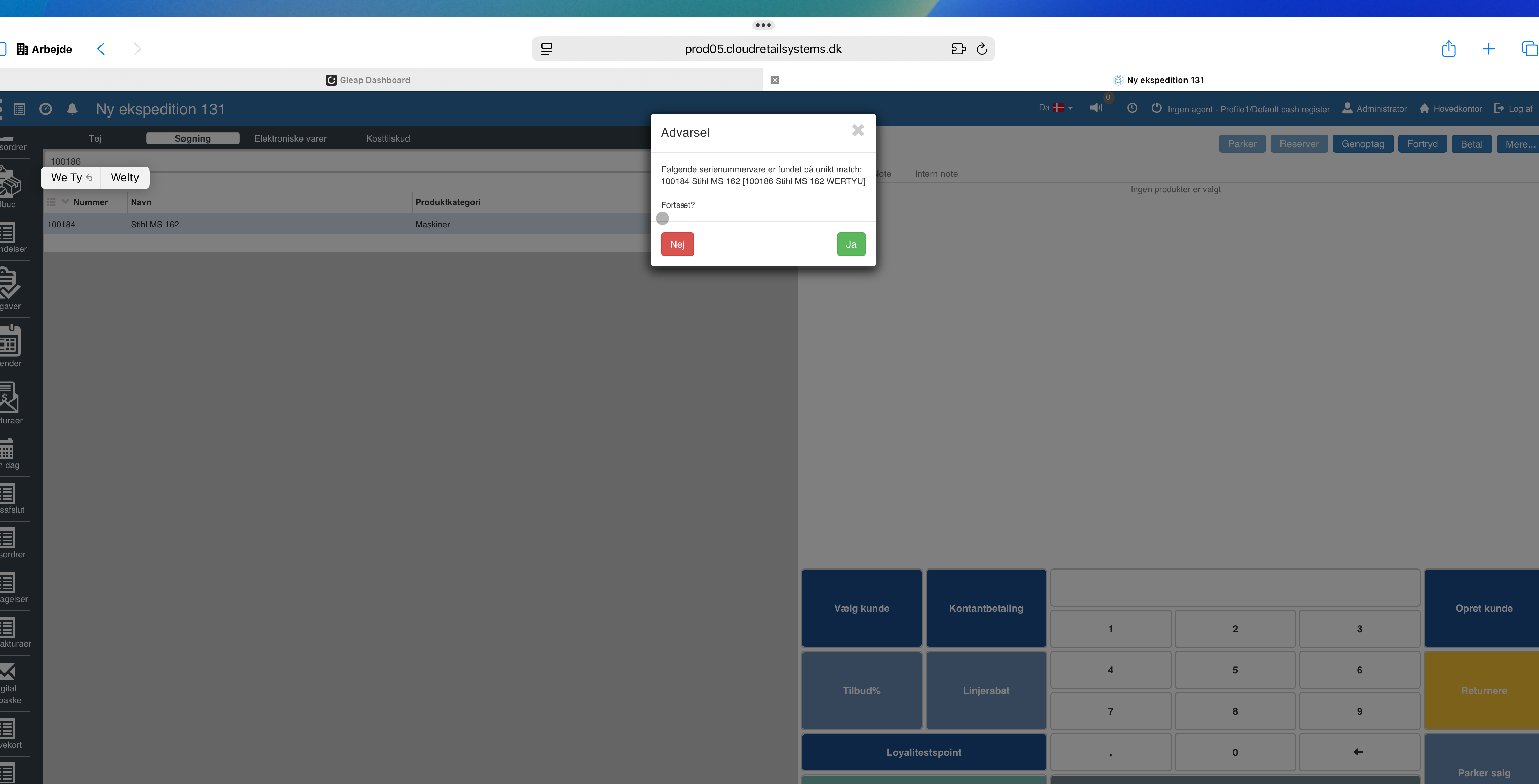 Når søgning finder et unikt match på en serienummervare vises denne dialog.