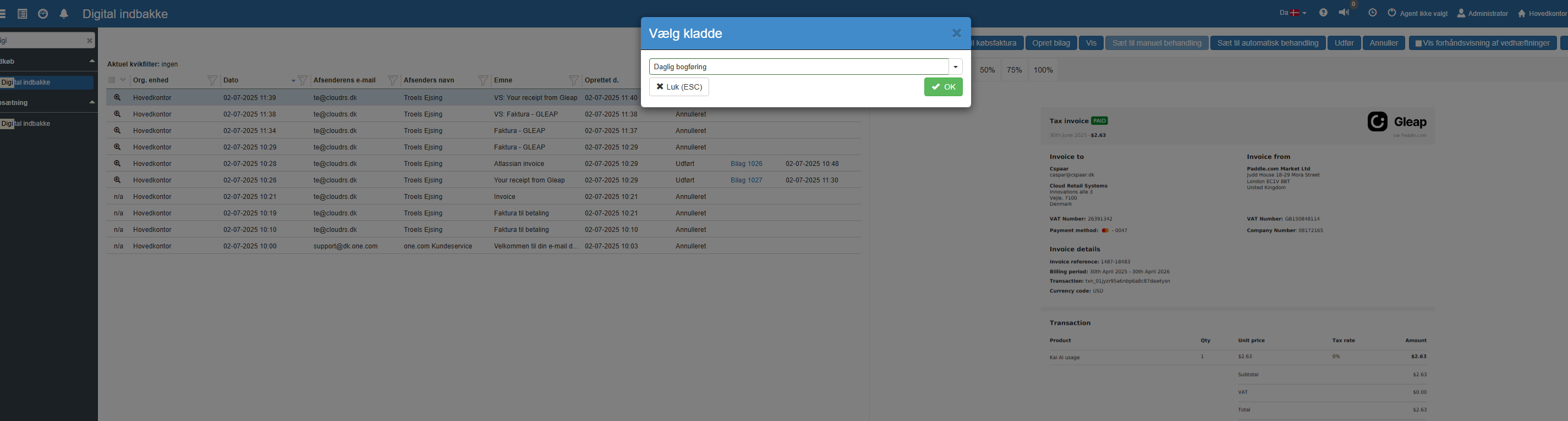 Det er nu muligt at tilknytte bilag fra den digitale indbakke - direkte fra posteringskladden