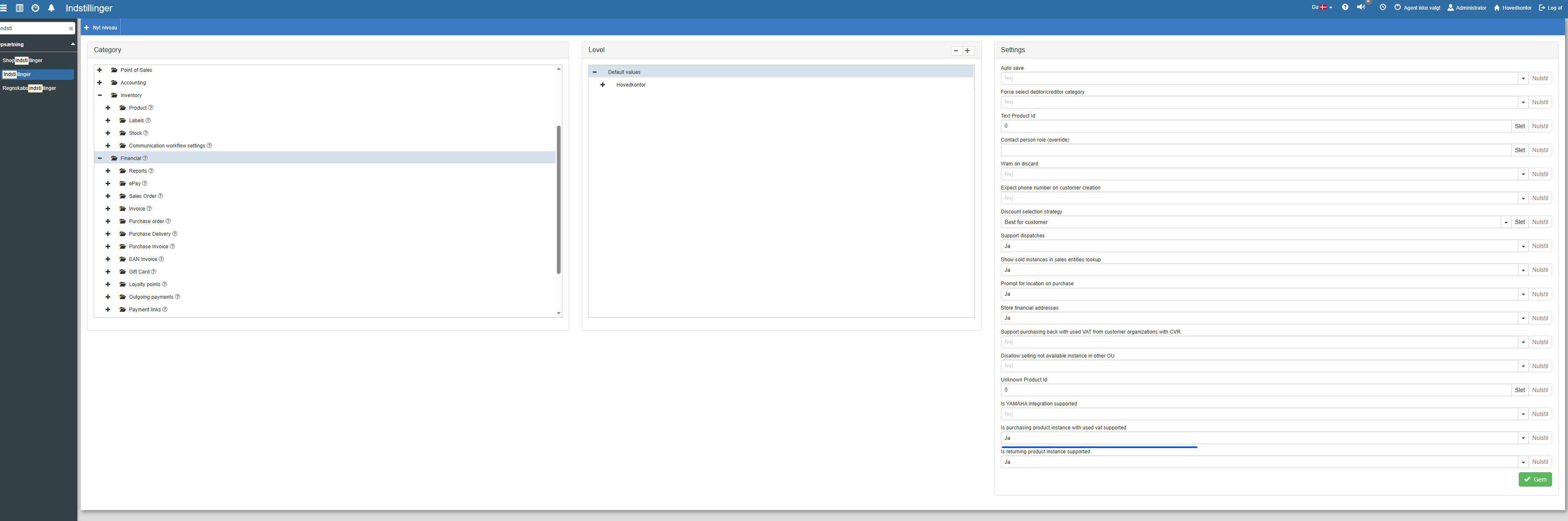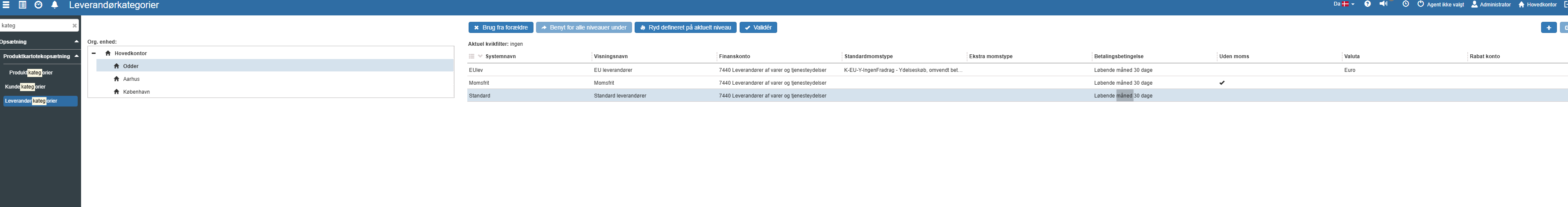 Når debitor/leverandør-kategori og indstillinger vedligeholdes pr. Org. enhed er det lavet således at det kun er de Org. enheder brugeren har adgang som vises.
