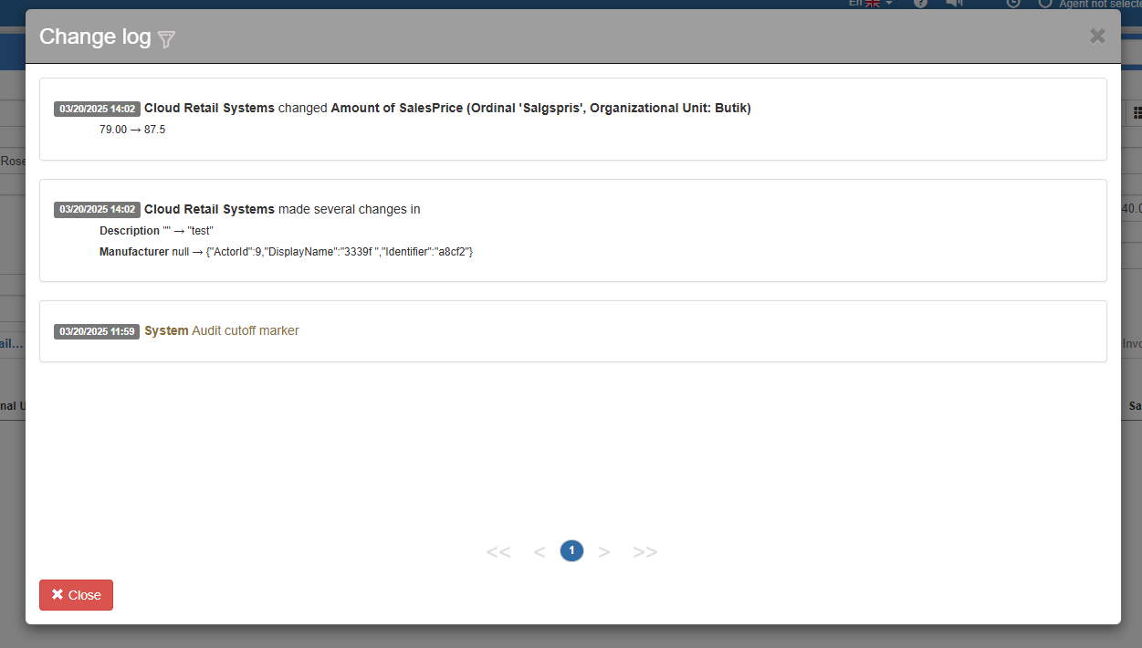 Vi gemmer ikke ændringer for evigt. Det afhænger af mængden af ændringer (eks. job der dagligt retter i produkter vil medføre hurtig sletning af ændringslog).