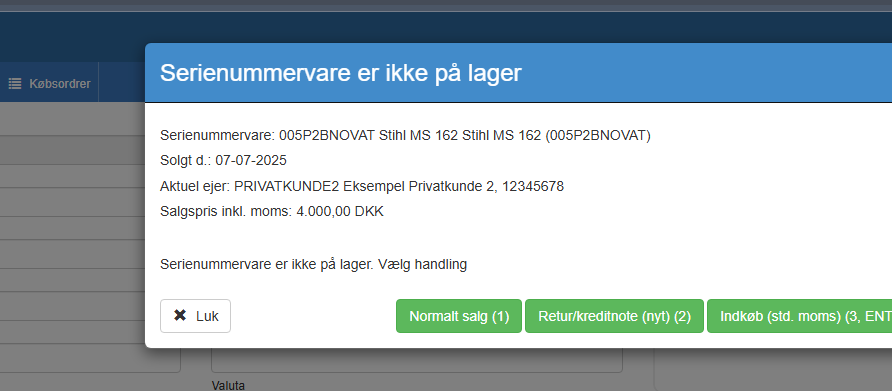 Indkøb fra salgsordre er altid brugte serievare. Ved indkøb af nye henvises til købsfaktura/købsordre.