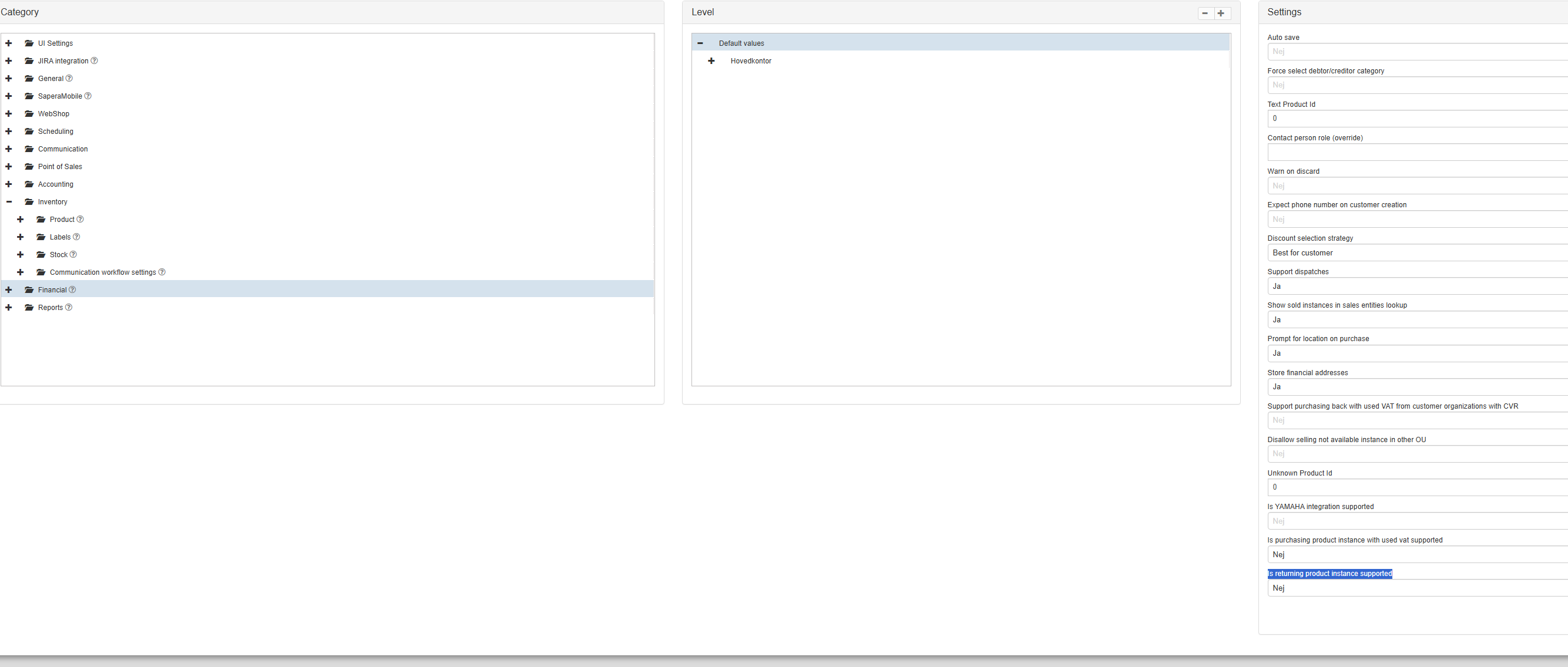 Bemærk retur/kreditnote kan slåes fra med følgende indstilling
