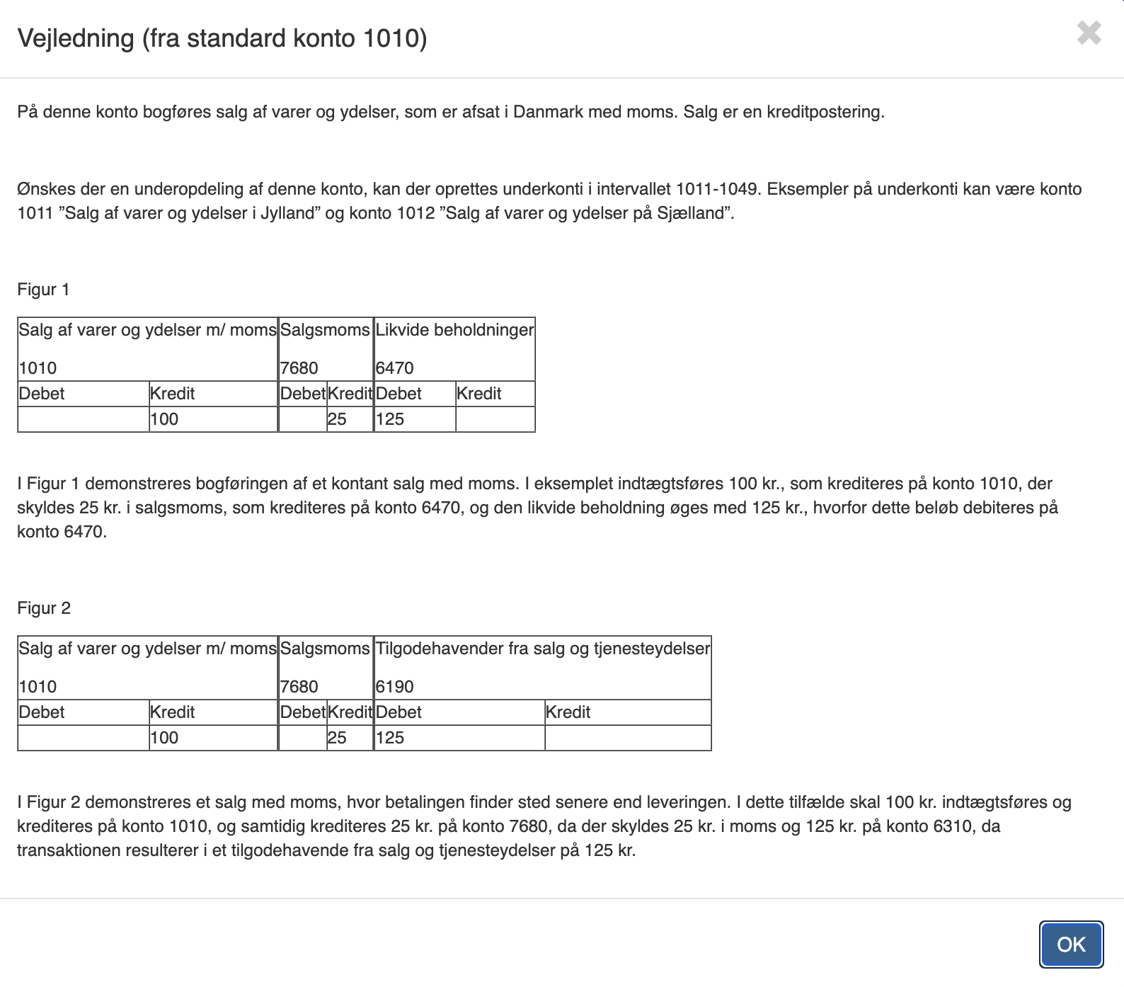 Hvis der IKKE er indtastet en konteringsvejledning, men kontoen er mappet til en standardkonto, så vises vejledningen fra standardkontoen. Vær opmærksom på, at denne vejledning er fra standardkontoen. Læs mere om konteringsvejledning her.