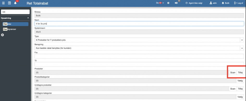 Man kan nu tilføje produkter til en rabat, ved at skanne disse produkter (Scan).