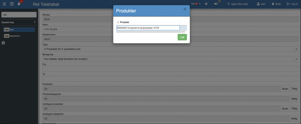 Produkter kan nu tilføjes til en rabat ved enten at indtaste/ scanne produktet – eller ved at fremsøge produktet / produkterne ved brug af søg produkt dialog.