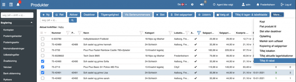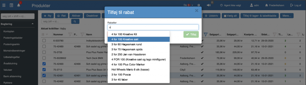 Du kan nu nemt tilføje produkter til en specifik rabat ved at markere flere produkter og derefter vælge “Tilføj til rabat” fra menuen.