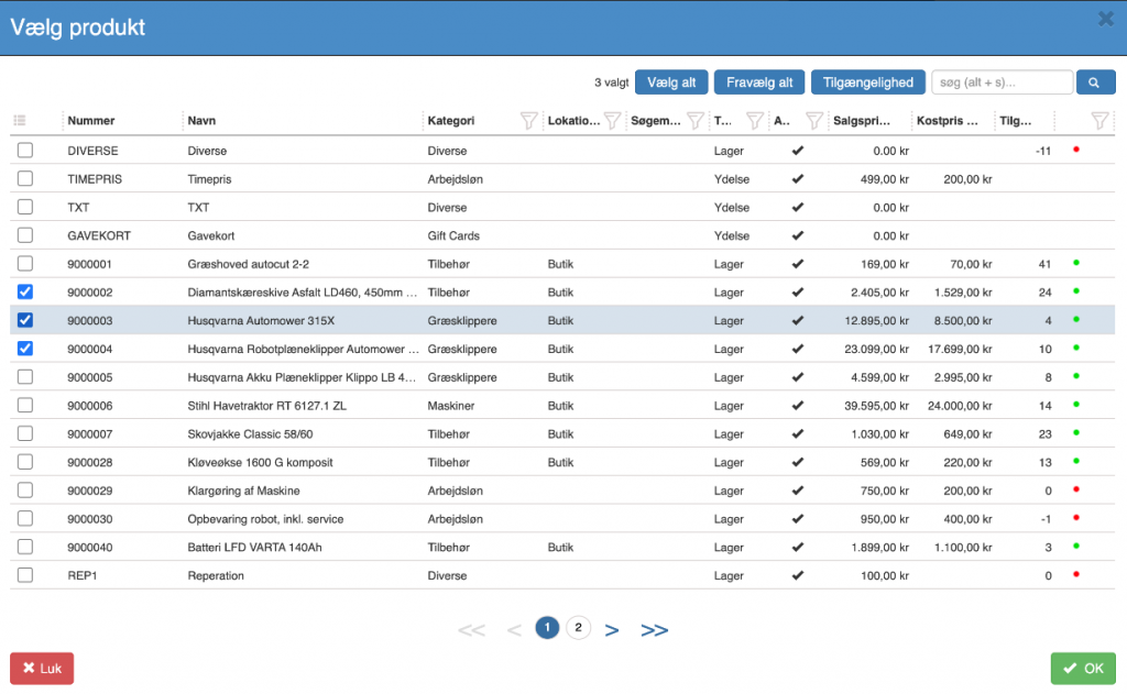 Når der klikkes på “OK,” bliver de valgte produkter tilføjet til lagerkladden.