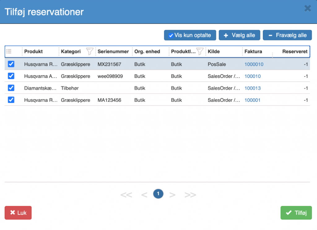 Tilføj reservationer kan nu filtreres på om de faktisk er optalte i lagerkladden. “Vis kun optalte”