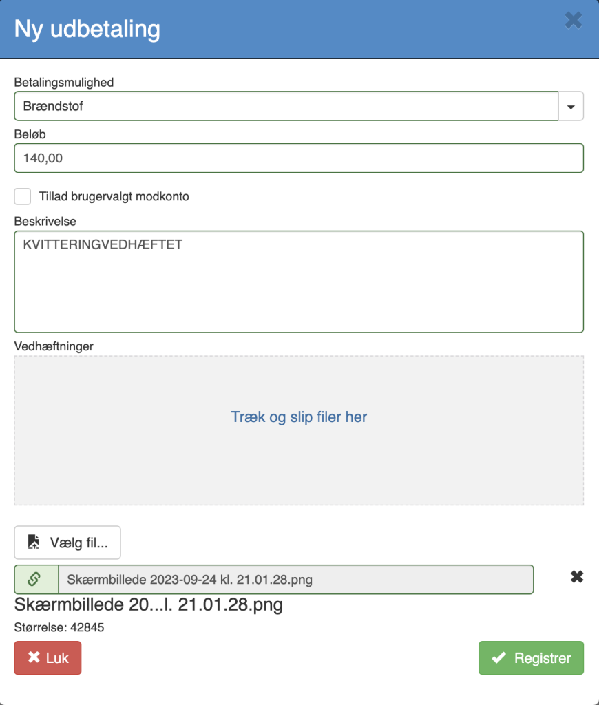 Udbetaling fra kassen giver nu mulighed for vedhæftning af kvitteringen.
