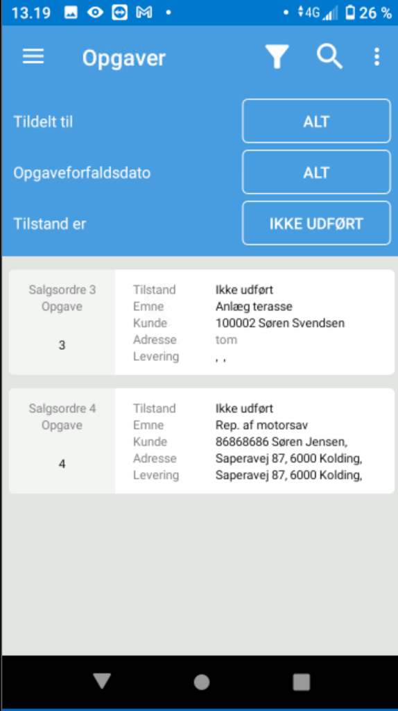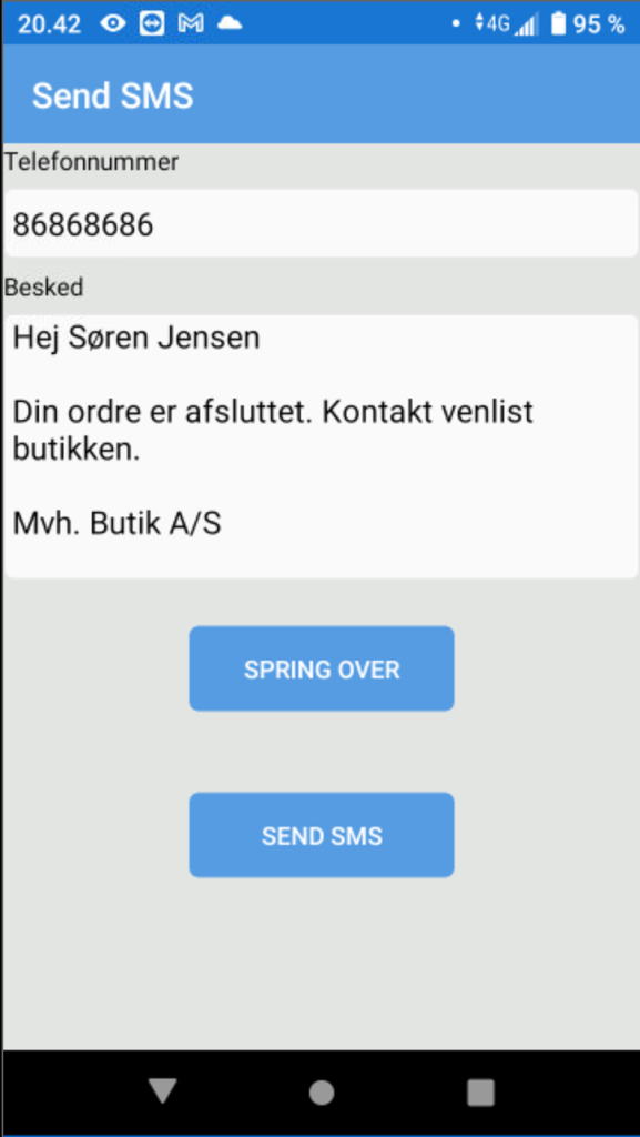 Det er nu muligt, direkte fra APP’en, at afsende SMS eller E-mail når en salgsordre er afsluttet (Arbejde udført tilstand).