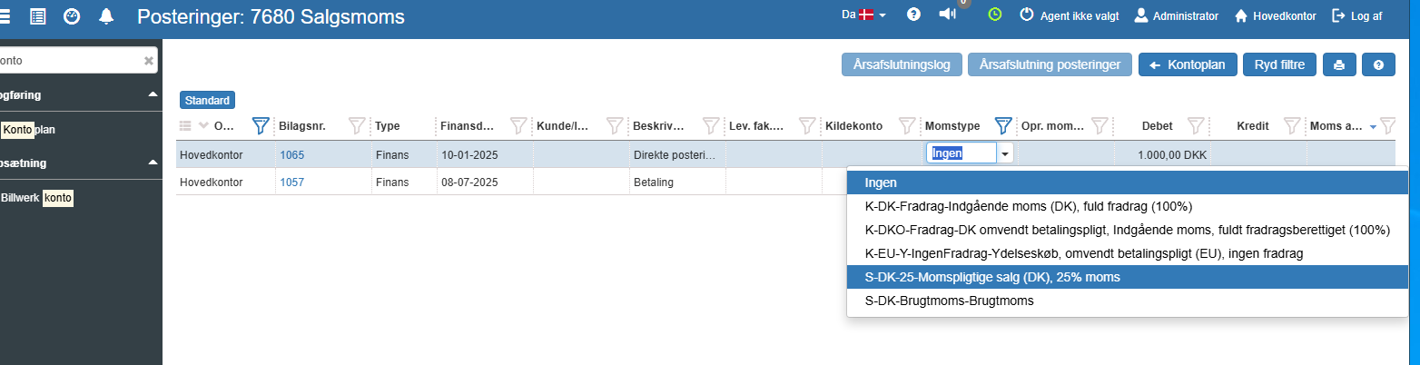 Find posteringen og vælg ønsket momstype (fx S-DK-25)