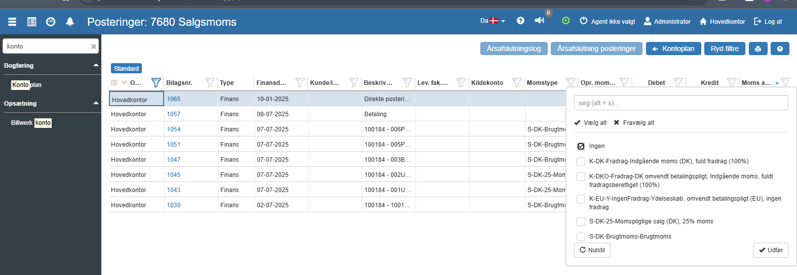 Filtrér på "Ingen" under opr. momstype