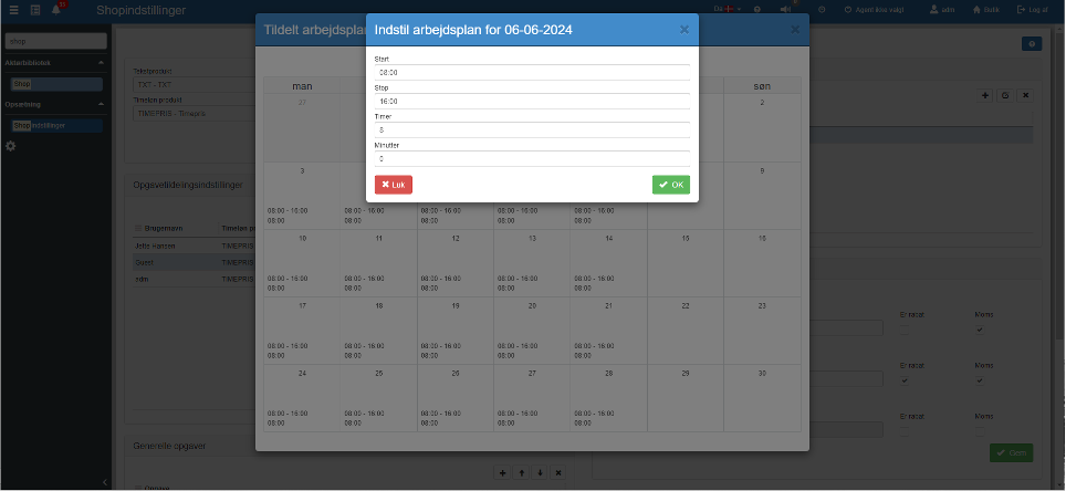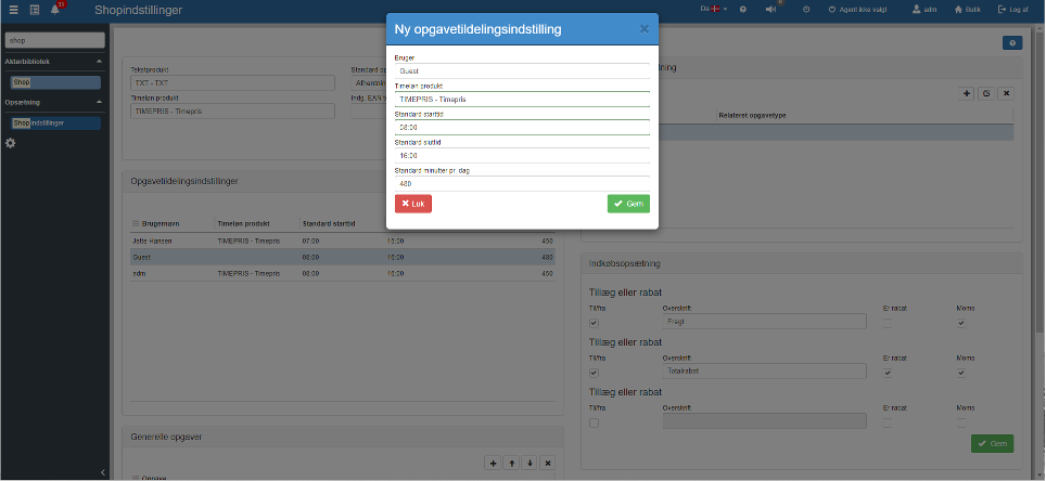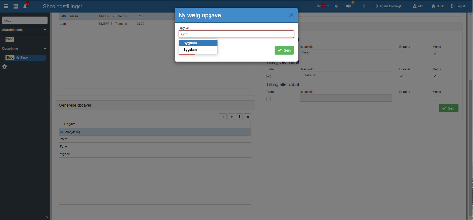 Herefter skal man over i “Shopindstillinger” for at tilføje opgaven til “Generelle opgaver”. Her vælger man mellem de opgaver, der er blevet oprettet i “Opgaver”.
