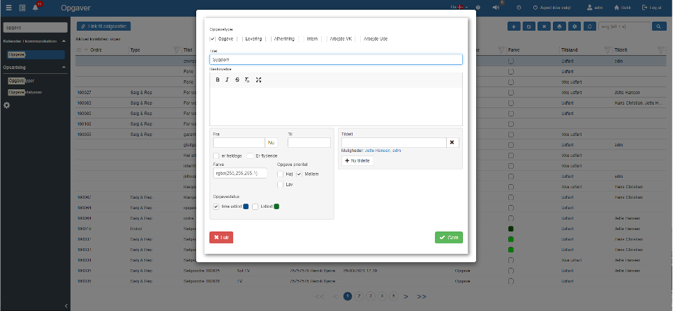 For at oprette en opgave, som ikke ligger i den template, der er lavet, skal man ind under “Opgaver” og klikke på “+”.