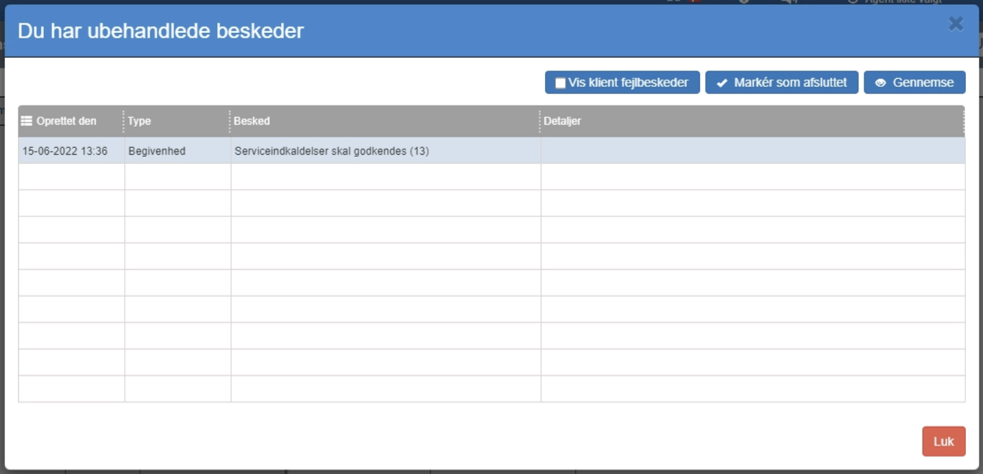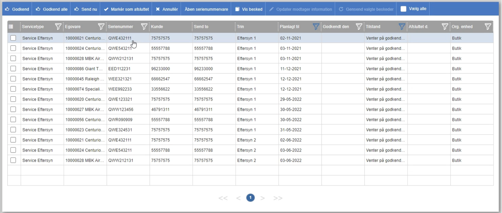 Du kan så vælge at klikke ind på dem enkeltvis for at se nærmere, ellers kan du godkende enten enkelte eller dem alle, hvor kunderne så vil modtage en besked om, at deres enhed indkaldes til serviceeftersyn.