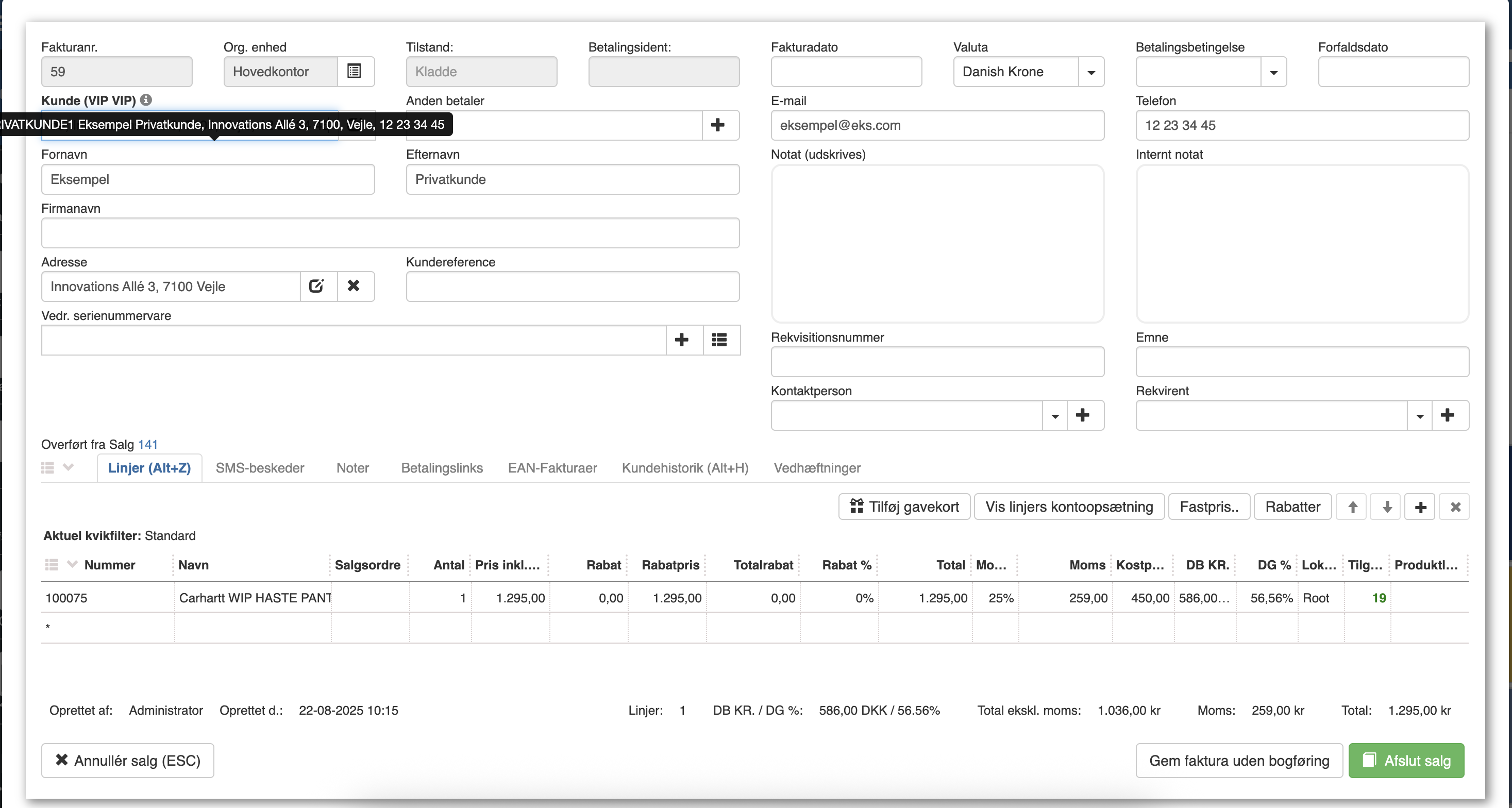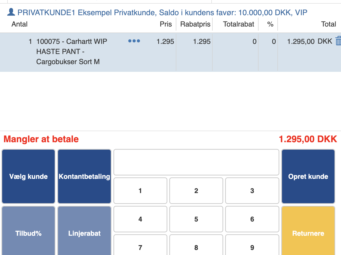 Det gør du ved at indtaste de ønskede varer og derefter klikke på “Vælg kunde”