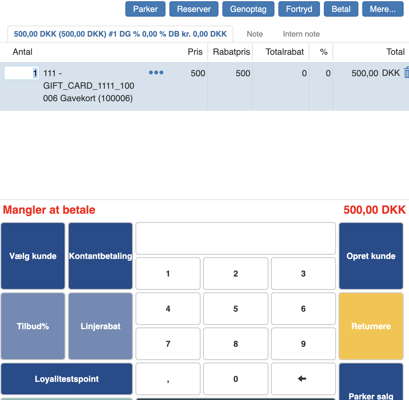 Gavekortet ligger nu på en varelinje.