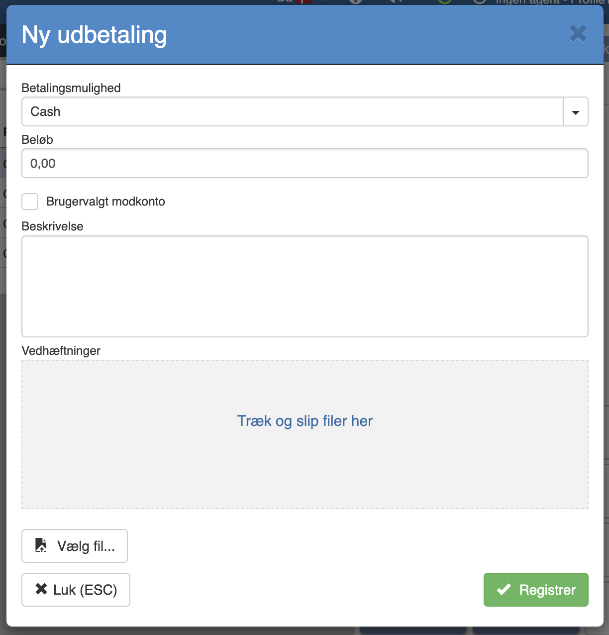 Her udfyldes beløbet, en beskrivelse af, hvad det er brugt på og evt. et bilag. Klik herefter på “Registrer”