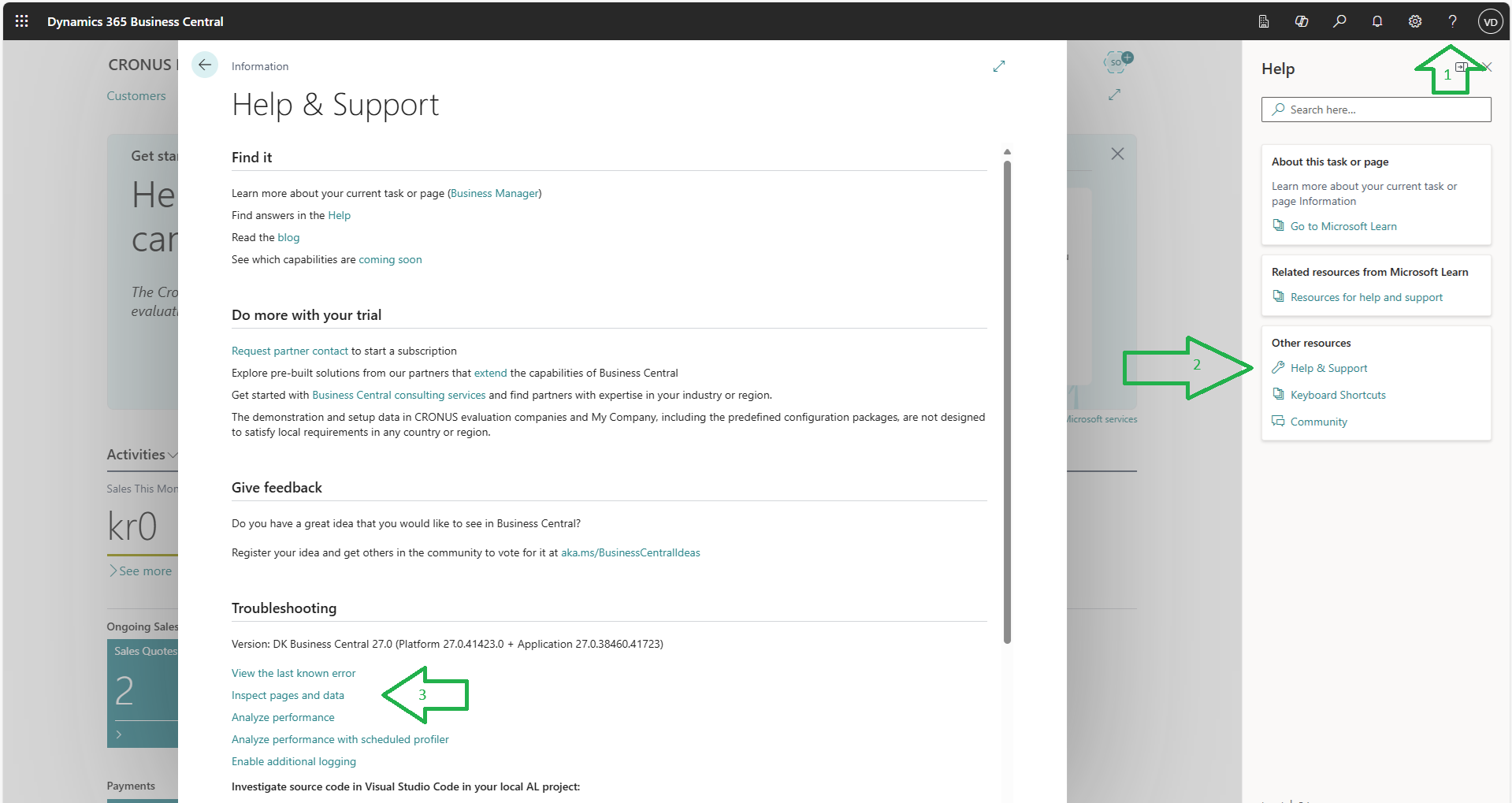 I det åbne vindue trykkes på linket [Inspect pages and data].