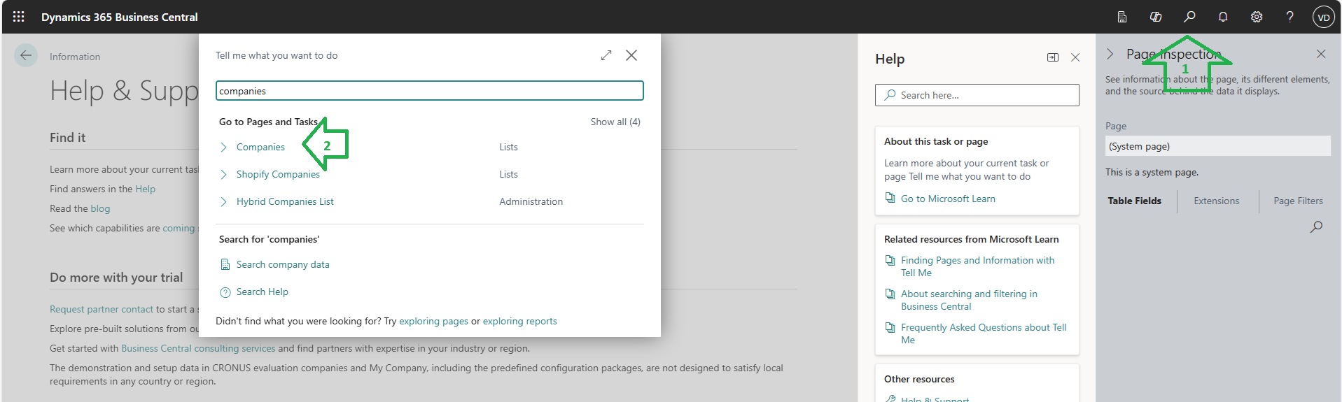 Indtast [Companies] i søgefeltet og vælg det fundne [Companies]-link.